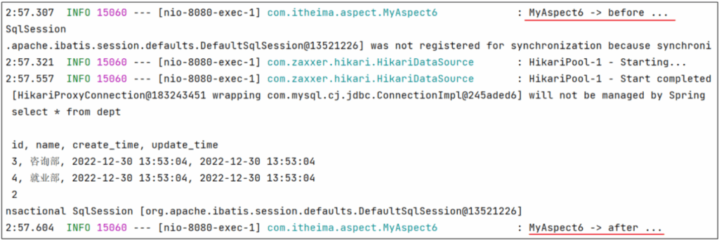 - @Around环绕通知中原始方法调用时有异常,通知中的环绕后的代码逻辑也不会在执行了 (因为原始方法调用已经出异常了)
