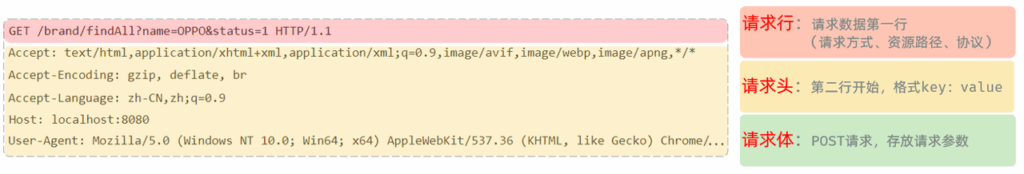 - http协议要求:浏览器在向服务器发送请求数据时,或是服务器在向浏览器发送响应数据时,都必须按照固定的格式进行数据传输